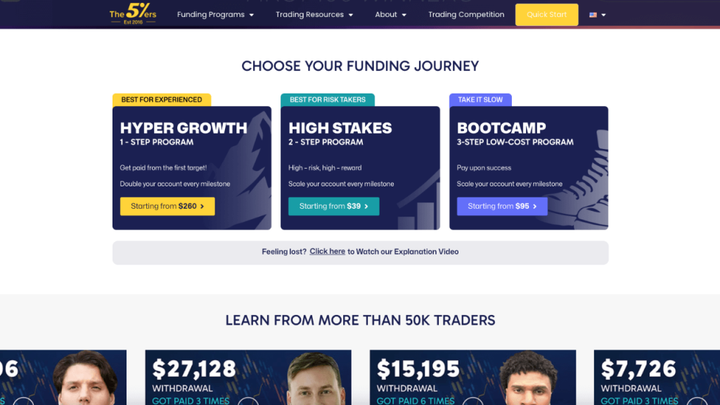 - The 5ers stands out for its varied program design, high profit potential (up to 100%), and liberal trading freedoms, plus structured, transparent scaling.